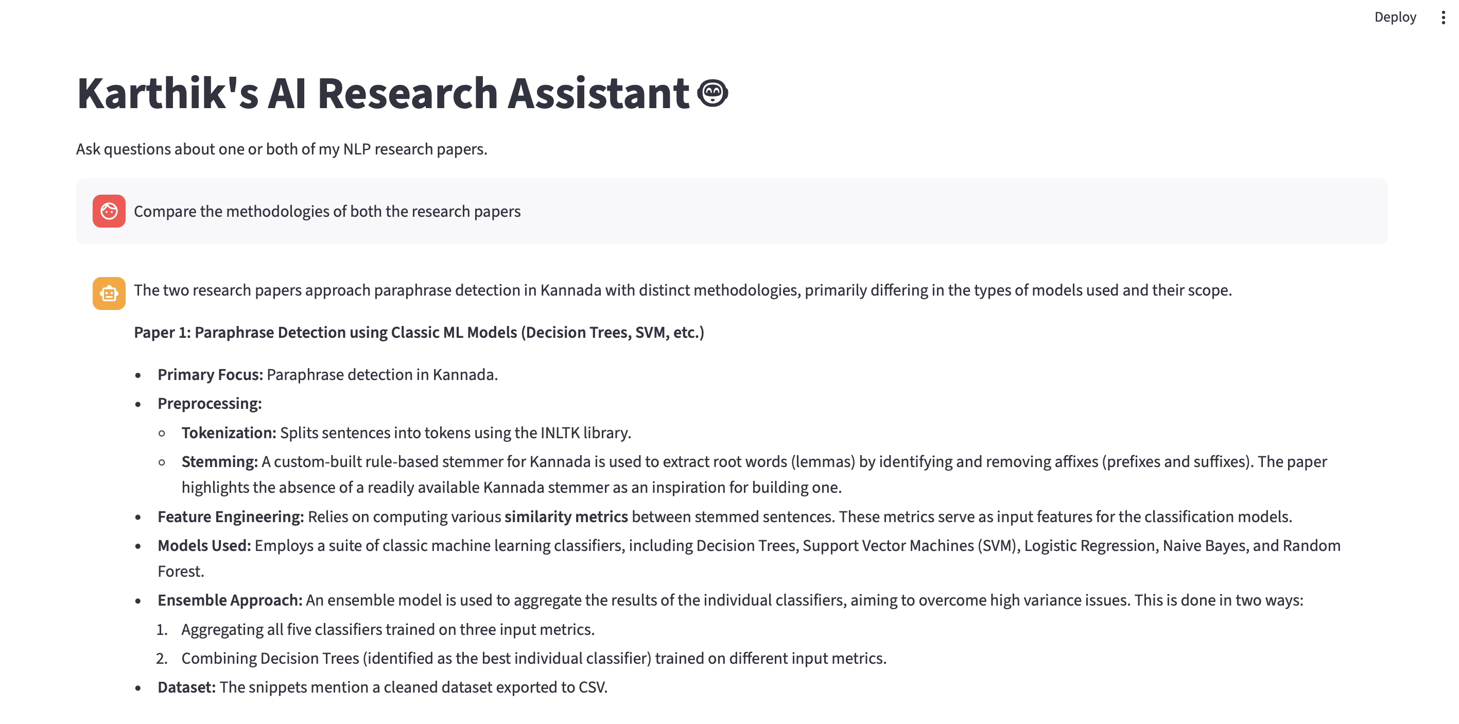 An advanced agentic system that can read, compare, and synthesize information across multiple documents to answer complex, comparative questions about my research.
